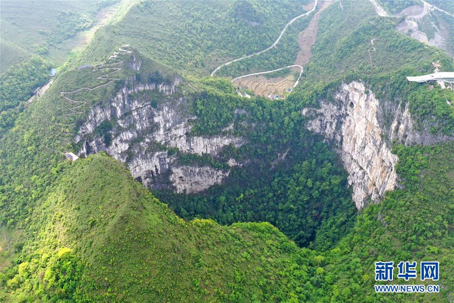 這是4月19日拍攝的中國樂業(yè)—鳳山世界地質(zhì)公園內(nèi)的大石圍天坑(無人機(jī)照片)。中國樂業(yè)—鳳山世界地質(zhì)公園位于廣西西北部,公園內(nèi)地質(zhì)遺跡包括天坑群、天窗群、鐘乳石等,具有重要的科研價(jià)值和美學(xué)觀賞價(jià)值。