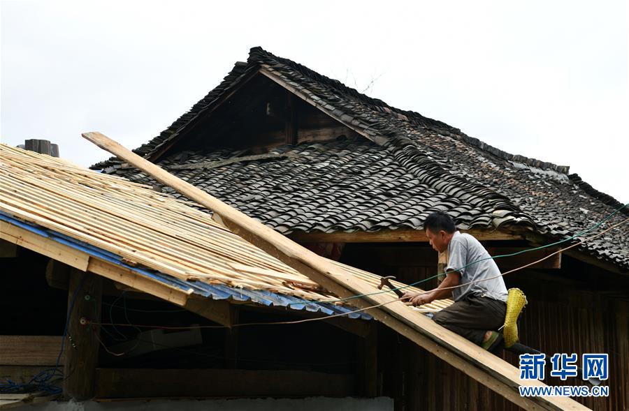 貴州省從江縣加榜鄉(xiāng)黨扭村村民在整治吊腳樓風(fēng)貌(4月16日攝)。貴州省從江縣把人居環(huán)境整治作為脫貧攻堅(jiān)工作的一項(xiàng)重要舉措來抓,對(duì)鄉(xiāng)村規(guī)劃范圍內(nèi)長(zhǎng)期無人居住的危房、廢棄禾倉、棚圈、柴草房和房前屋后的殘?jiān)珨啾诘冗M(jìn)行清理整治,進(jìn)行復(fù)墾復(fù)綠,同時(shí)開展農(nóng)戶衛(wèi)生和村寨環(huán)境整治,做到鄉(xiāng)村環(huán)境干凈、衛(wèi)生、整潔,扮靚美麗鄉(xiāng)村。新華社記者楊文斌攝