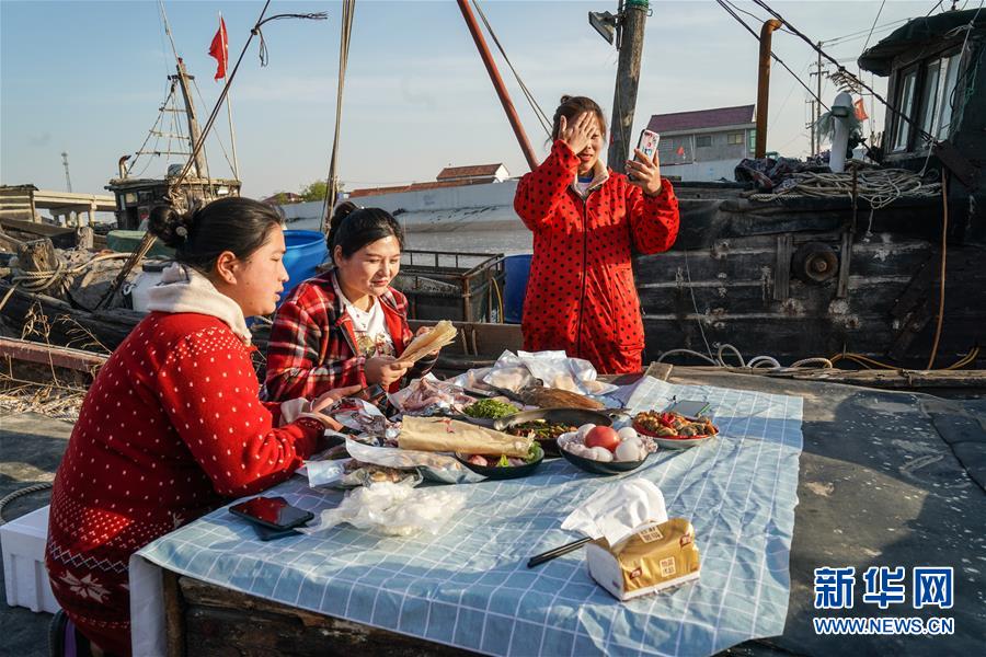 4月22日,做海鮮批發(fā)生意的徐紅紅(右)在拍攝短視頻前化妝。她在一個(gè)月前開(kāi)始做網(wǎng)絡(luò)直播銷(xiāo)售,目前已經(jīng)吸引了1000多個(gè)粉絲。新華社記者楊磊攝