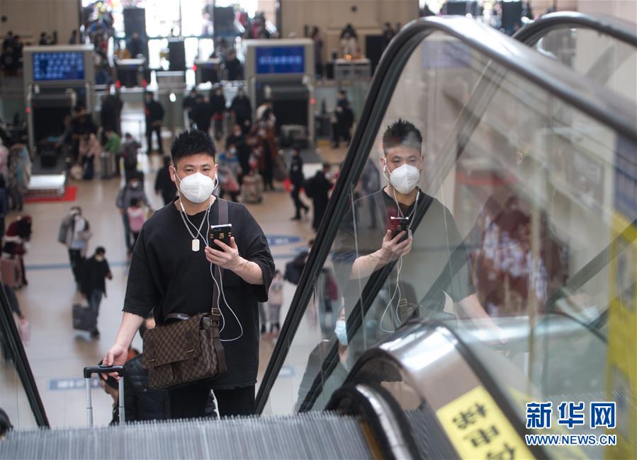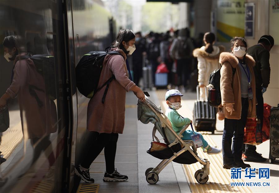 4月8日,乘客在漢口火車站進(jìn)站乘車。新華社記者肖藝九攝