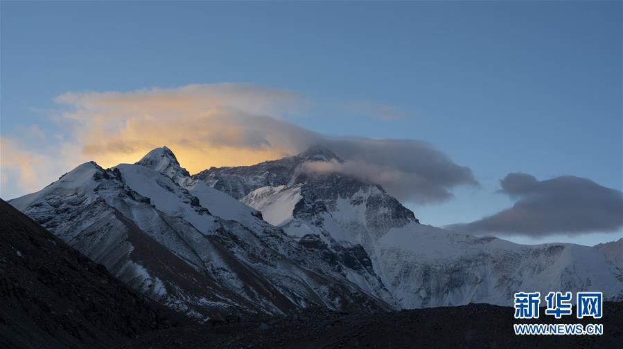 日出時(shí)分拍攝的珠峰(4月21日攝)。新華社記者旦增尼瑪曲珠攝