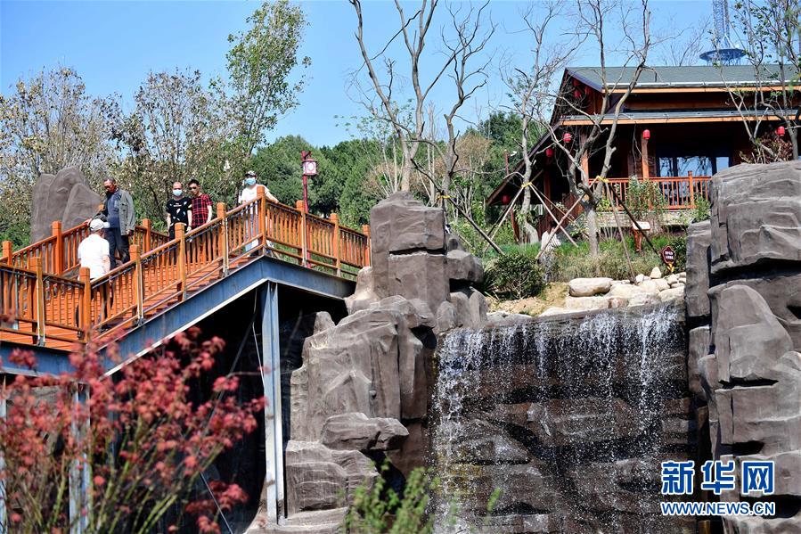 5月1日,游客在河南省鶴壁市淇濱區(qū)鉅橋鎮(zhèn)崗坡村的水系旁游玩。 新華社記者馮大鵬攝
