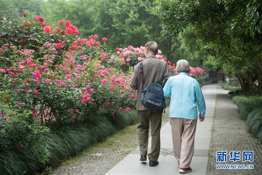 5月5日,游客在西湖畔的杭州花圃觀看月季花展?!拔逡弧逼陂g,第八屆杭州西湖月季花精品展在杭州西子湖畔舉行,展出國內外700余個月季品種。新華社記者翁忻旸攝