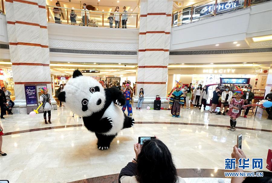 5月5日,大熊貓人偶在上海環(huán)球港商場為“五五購物節(jié)”營造氣氛。5月4日晚,上海首次啟動(dòng)大規(guī)模商業(yè)促銷活動(dòng)“五五購物節(jié)”,多家在線新經(jīng)濟(jì)企業(yè)參與,通過線上流量優(yōu)勢反哺線下賣場,實(shí)現(xiàn)電商與實(shí)體零售融合互動(dòng),激活消費(fèi)潛力、驅(qū)動(dòng)消費(fèi)復(fù)蘇。據(jù)“上海發(fā)布”的消息,截至5日14時(shí)12分,“五五購物節(jié)”上海地區(qū)消費(fèi)支付總額已超100億元。新華社記者陳飛攝