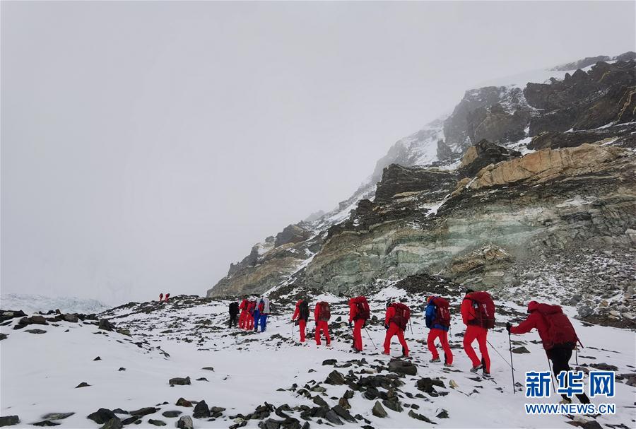 5月7日,2020珠峰高程測量登山隊前往海拔6500米的前進(jìn)營地。新華社特約記者拉巴攝
