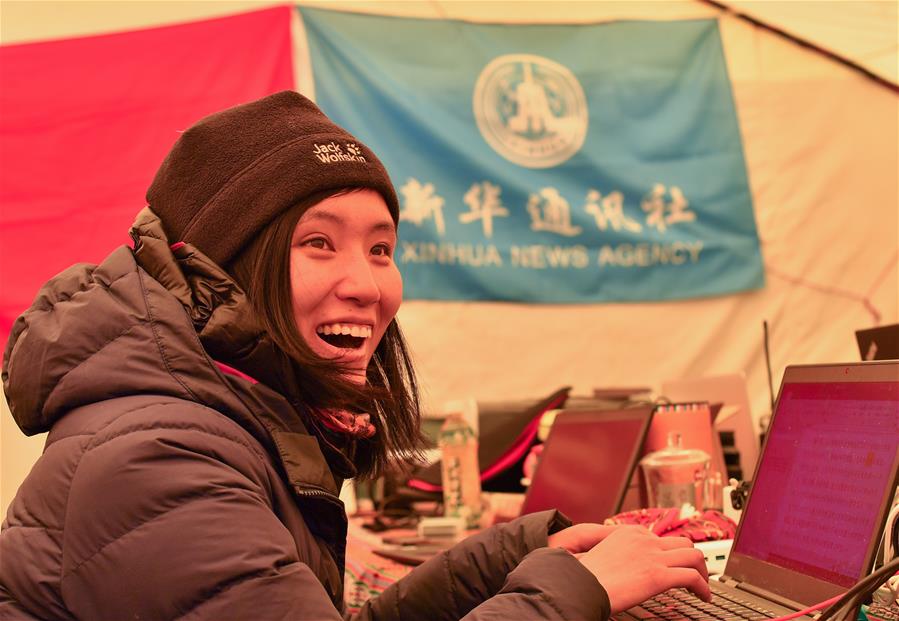 新華社記者王沁鷗在珠峰大本營(5月8日攝)。5月8日是世界微笑日。在海拔5200米的珠峰大本營,參與2020珠峰高程測量的各方人員,微笑期待本次測量活動的圓滿成功。