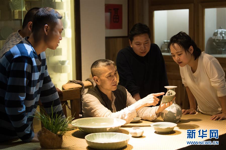 5月8日,項宏金在龍泉青瓷裝飾紋樣研究所和來訪的年輕瓷人分享古瓷。1965年出生的項宏金,被浙江龍泉年輕一代瓷人稱為“項哥”,他從20世紀90年代開始收集龍泉青瓷標本,研究青瓷紋樣。2014年出版著作《龍泉青瓷裝飾紋樣》,次年開設(shè)龍泉青瓷裝飾紋樣研究所,將自己收藏的千余件標本跟瓷器愛好者、創(chuàng)作者免費分享。新華社記者翁忻旸攝