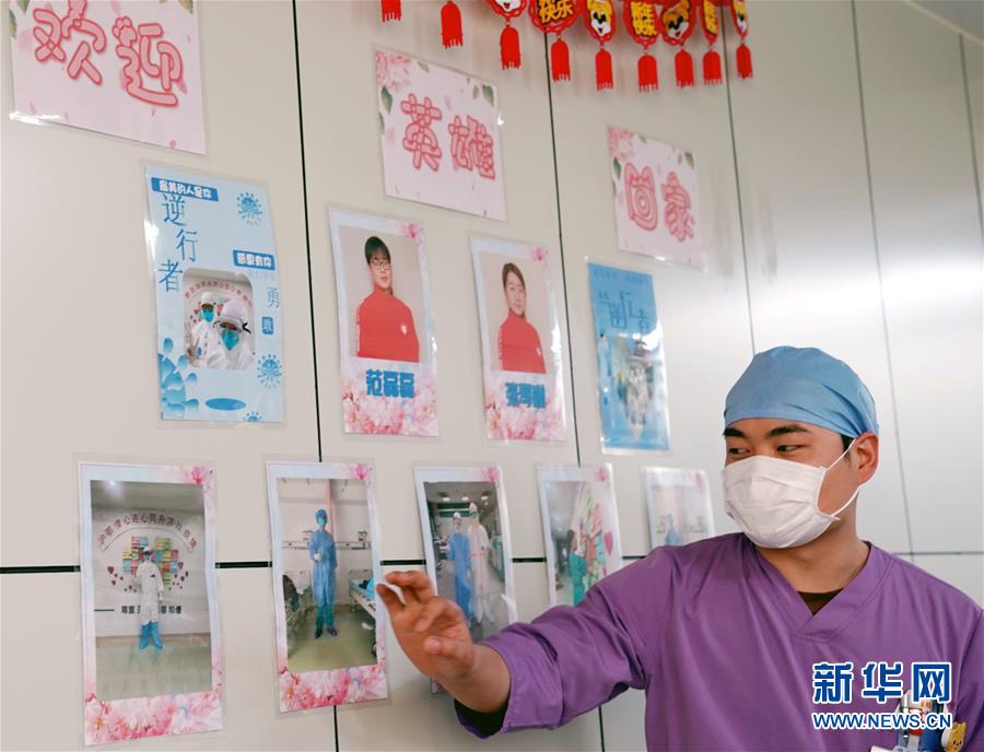 5月10日,上海市普陀區(qū)中心醫(yī)院急診重癥監(jiān)護室的護士范磊磊站在同事們制作的“榮譽榜”前。這是科室同事為了歡迎他和另一位援鄂護士平安歸來而準備的“驚喜禮物”。新華社記者劉穎攝