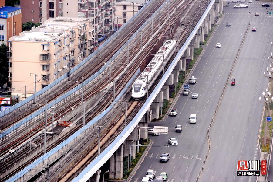 2020年5月11日,四川省成都市,動(dòng)車運(yùn)行在成灌鐵路上。隨著發(fā)展,鐵路沿線已是高樓林立。