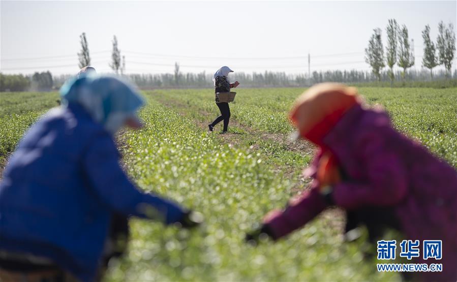 5月11日,采茶工在寧夏百瑞源賀蘭山基地采摘枸杞芽茶。當(dāng)日,寧夏百瑞源賀蘭山基地枸杞芽茶全面進(jìn)入采摘季。據(jù)了解,該基地茶園面積300余畝,助力附近200多名農(nóng)民就業(yè)增收。新華社記者楊植森攝