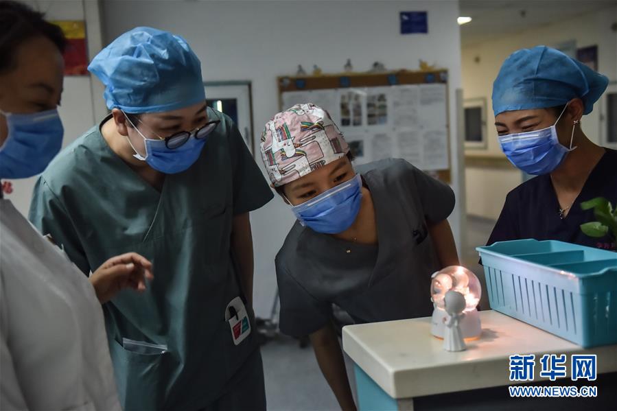 5月11日,在北京地壇醫(yī)院感染二科護(hù)士站,護(hù)士們被在護(hù)士節(jié)收到的禮物——天使玩偶所吸引。北京地壇醫(yī)院是北京市收治新冠肺炎患者的定點(diǎn)醫(yī)院之一,醫(yī)院的醫(yī)護(hù)人員一直奮戰(zhàn)在抗擊疫情的一線(xiàn)。在國(guó)際護(hù)士節(jié)前夕,記者前往北京地壇醫(yī)院,記錄下抗疫一線(xiàn)護(hù)士的日常工作狀態(tài)。新華社記者彭子洋攝