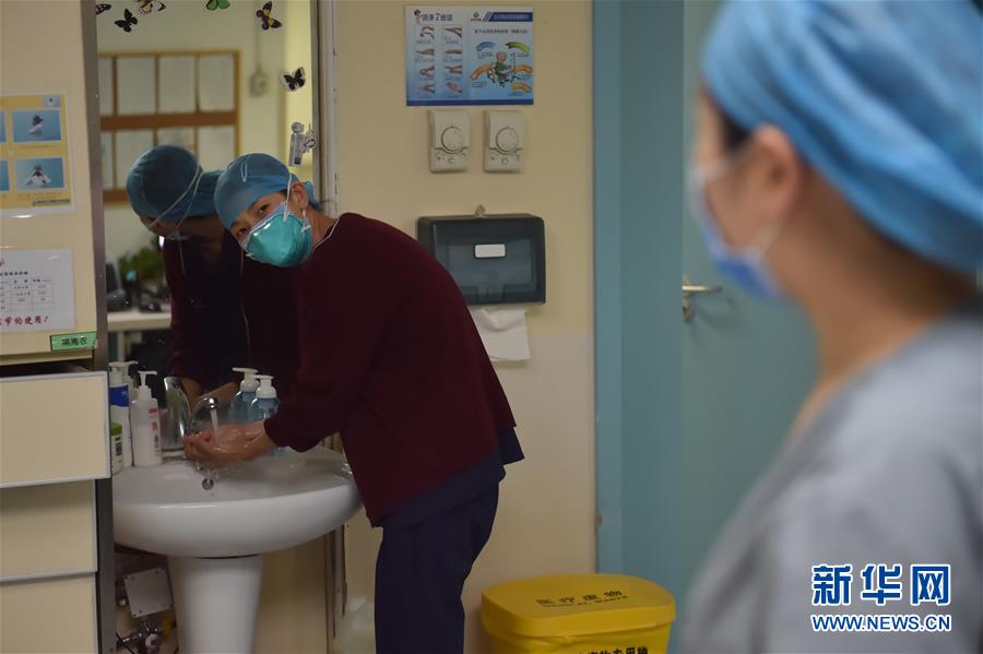 5月11日,在北京地壇醫(yī)院感染二科護(hù)士站,一名護(hù)士在洗手。北京地壇醫(yī)院是北京市收治新冠肺炎患者的定點(diǎn)醫(yī)院之一,醫(yī)院的醫(yī)護(hù)人員一直奮戰(zhàn)在抗擊疫情的一線(xiàn)。在國(guó)際護(hù)士節(jié)前夕,記者前往北京地壇醫(yī)院,記錄下抗疫一線(xiàn)護(hù)士的日常工作狀態(tài)。新華社記者彭子洋攝