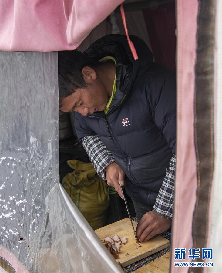 在海拔6500米的珠峰前進(jìn)營(yíng)地,一名高山廚師在準(zhǔn)備菜品(5月10日攝)。新華社記者孫非攝