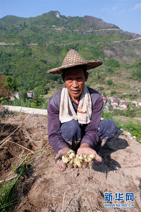 5月12日,青田縣巨浦鄉(xiāng)西坑村的村民在梯田收獲中藥貝母。當(dāng)?shù)夭扇『献魃缂懈N,冬春種中藥、夏秋種養(yǎng)水稻和田魚的方式,全面提升土地利用率和收益。新華社記者徐昱攝