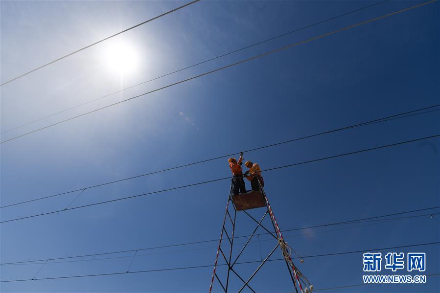 5月12日,中國鐵路上海局集團(tuán)公司上海高鐵維修段的技術(shù)人員在商合杭高鐵浙江湖州段調(diào)整接觸網(wǎng)導(dǎo)線。近日,商合杭高鐵合肥至湖州段聯(lián)調(diào)聯(lián)試正有條不紊進(jìn)行中。中國鐵路上海局集團(tuán)公司上海高鐵維修段抽調(diào)49名精兵強(qiáng)將,持續(xù)對管轄范圍內(nèi)的高鐵線路、信號、接觸網(wǎng)線進(jìn)行調(diào)試,為下一階段打下基礎(chǔ)。據(jù)了解,商合杭高鐵合湖段聯(lián)調(diào)聯(lián)試之后將轉(zhuǎn)入運(yùn)行試驗(yàn)階段,驗(yàn)收合格并通過安全評估后,力爭6月底具備開通運(yùn)營條件。新華社記者黃宗治攝