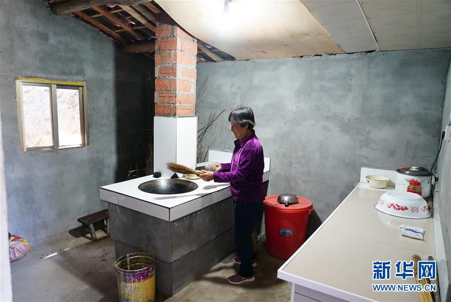 5月12日,在安康市漢濱區(qū)早陽(yáng)鎮(zhèn)寨埡村,村民尚玉蓮在自家改造后的廚房?jī)?nèi)清潔灶臺(tái)。新華社記者邵瑞攝