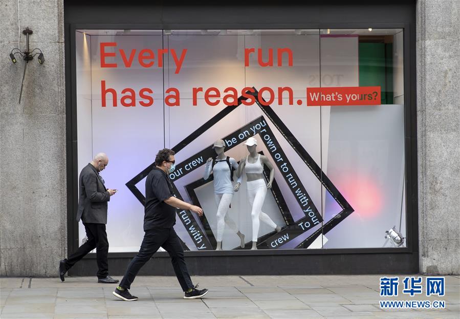 5月12日,人們從英國(guó)倫敦?cái)z政街關(guān)閉的店鋪前經(jīng)過(guò)。新華社記者韓巖攝