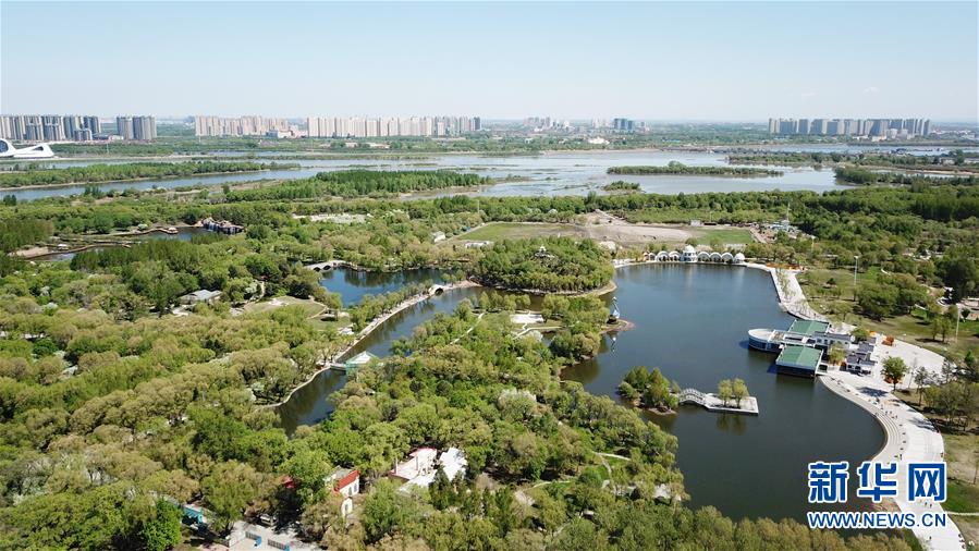 這是5月13日拍攝的太陽(yáng)島風(fēng)景區(qū)(無(wú)人機(jī)照片)。時(shí)下,位于黑龍江省哈爾濱市的太陽(yáng)島國(guó)家級(jí)風(fēng)景名勝區(qū)草青樹(shù)綠,綠意盎然。新華社記者王建威攝