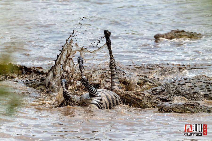 2020年5月20日報道(具體拍攝時間不詳),印度攝影師Nimit Virdi在肯尼亞賽馬拉國家保護區(qū)中親眼目睹到鱷魚獵食的震撼畫面。
