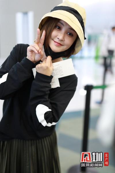2020年5月14日,上海,張歆藝現(xiàn)身機(jī)場。她頭戴遮陽帽,口罩遮面,穿著黑色長袖T恤搭配百褶長裙,自提行李箱現(xiàn)身機(jī)場,獲粉絲送機(jī),揮手道別。