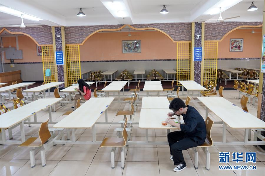 5月15日,在西南大學(xué)的一個(gè)學(xué)生食堂內(nèi),學(xué)生按照要求一人一桌吃午餐。當(dāng)日,重慶西南大學(xué)迎來(lái)疫情以來(lái)首批返校大學(xué)生。據(jù)介紹,按照疫情防控的需要,重慶市高校2020年春季學(xué)期從5月11日起按照“一校一策”原則,實(shí)行錯(cuò)峰錯(cuò)時(shí)分批次有序開(kāi)學(xué)復(fù)課。新華社記者劉潺攝