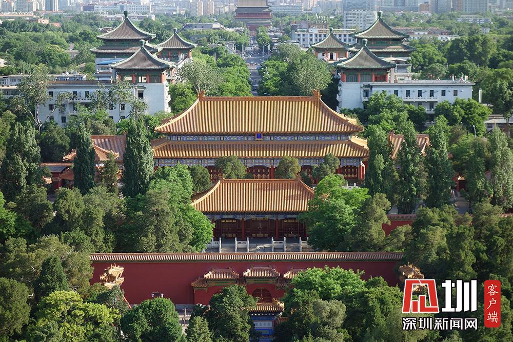 2020年5月18日,北京,天氣晴好碧空萬(wàn)里,游客在景山公園登高遠(yuǎn)望,北京城壯美景觀盡收眼底。