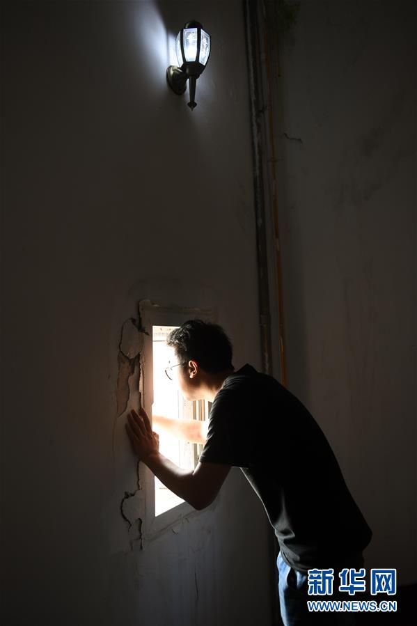 5月20日,在寧波七里嶼,葉家第五代燈塔工葉超群在燈塔內(nèi)向外眺望。葉超群自2013年起在七里嶼燈塔工作。新華社記者翁忻旸攝