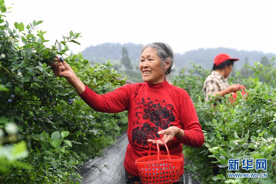 5月21日,村民在茨竹鎮(zhèn)大面坡村藍桂香園藍莓基地采摘藍莓。近日,位于重慶市渝北區(qū)茨竹鎮(zhèn)大面坡村的600余畝藍莓陸續(xù)進入采摘期。近年來,茨竹鎮(zhèn)探索“公司+基地+農(nóng)戶”的模式,利用良好的自然條件,積極發(fā)展高山藍莓產(chǎn)業(yè),在取得良好經(jīng)濟效益的同時,有效帶動當?shù)卮迕窬蜆I(yè)增收。新華社記者王全超攝