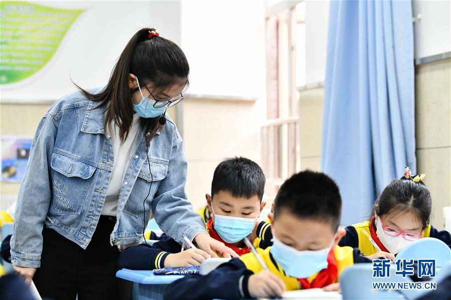 5月25日,貴陽市南明區(qū)苗苗實驗學(xué)校的老師在輔導(dǎo)學(xué)生做課堂練習(xí)。新華社記者楊文斌攝