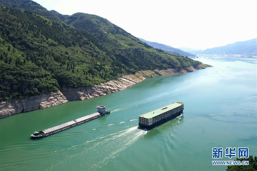 5月29日,船只在長江瞿塘峽段江面上航行(無人機(jī)照片)。新華社記者王全超攝