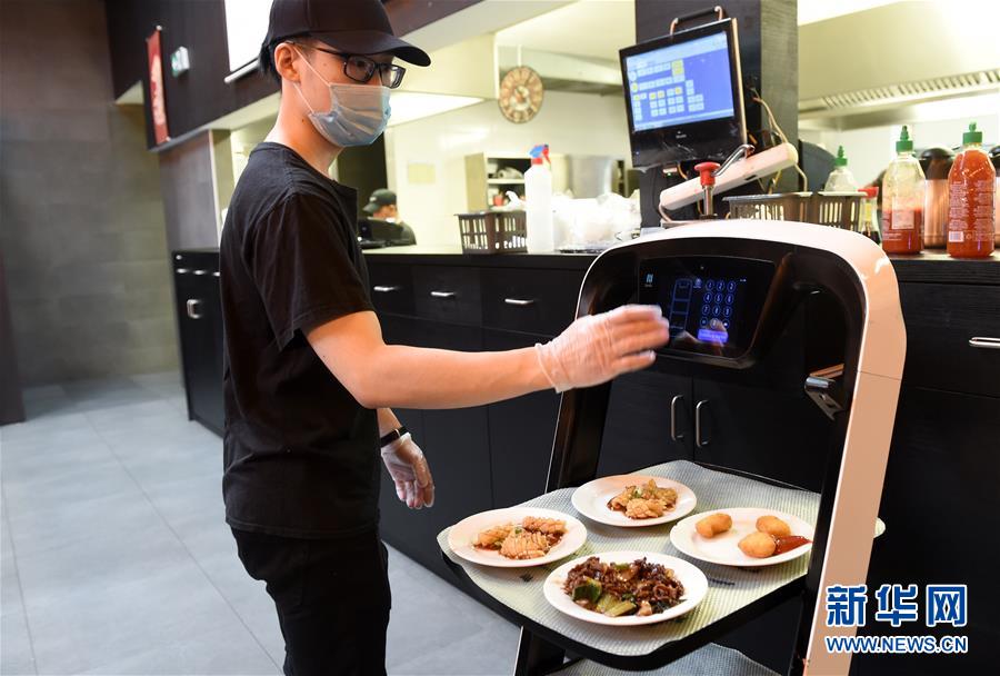 5月28日,在奧地利維也納一家亞洲餐廳內(nèi),機器人給顧客上菜。維也納的一家亞洲餐廳于疫情期間重新營業(yè)后,更多利用機器人上菜,以減少服務(wù)員和顧客之間的非必要接觸。新華社記者郭晨攝