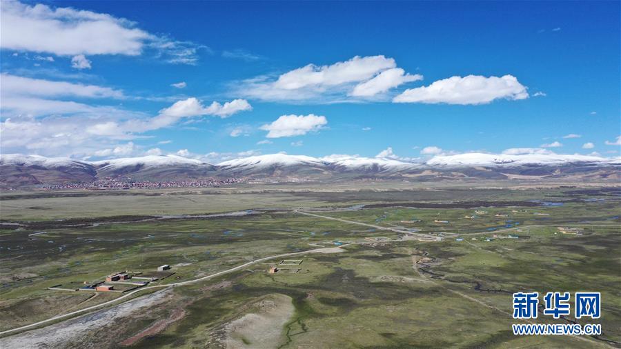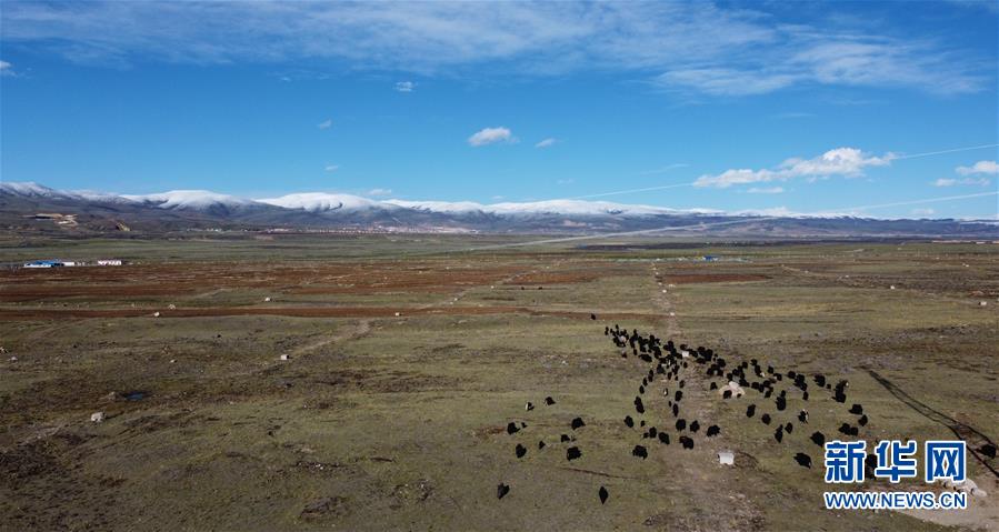 這是5月29日在四川省甘孜藏族自治州理塘縣奔戈鄉(xiāng)卡灰村拍攝的集體農(nóng)場(chǎng)(無人機(jī)照片)。四川省甘孜藏族自治州理塘縣地處青藏高原東部,縣城海拔約4000米,有“天空之城”的美譽(yù)。時(shí)值初夏,理塘的天空碧藍(lán)如洗,巍峨的雪山環(huán)繞四周,牦牛星星點(diǎn)點(diǎn)散落于曠野之上,構(gòu)成一幅高原特有的壯美圖景。新華社記者李夢(mèng)馨攝
