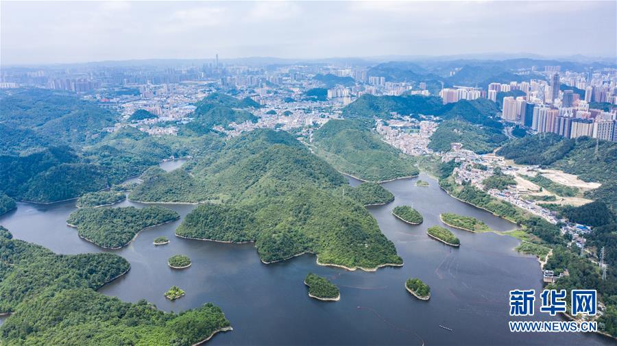 6月2日拍攝的貴陽(yáng)市阿哈湖國(guó)家濕地公園(無(wú)人機(jī)照片)。初夏時(shí)節(jié),貴州省貴陽(yáng)市阿哈湖國(guó)家濕地公園草木蒼翠,風(fēng)景如畫(huà),吸引人們前來(lái)休閑游玩。新華社記者陶亮攝。