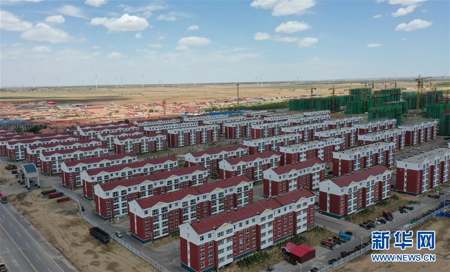 6月2日拍攝的尚義縣大青溝鎮(zhèn)的易地扶貧搬遷集中安置小區(qū)(無人機(jī)照片)。新華社記者楊世堯攝。