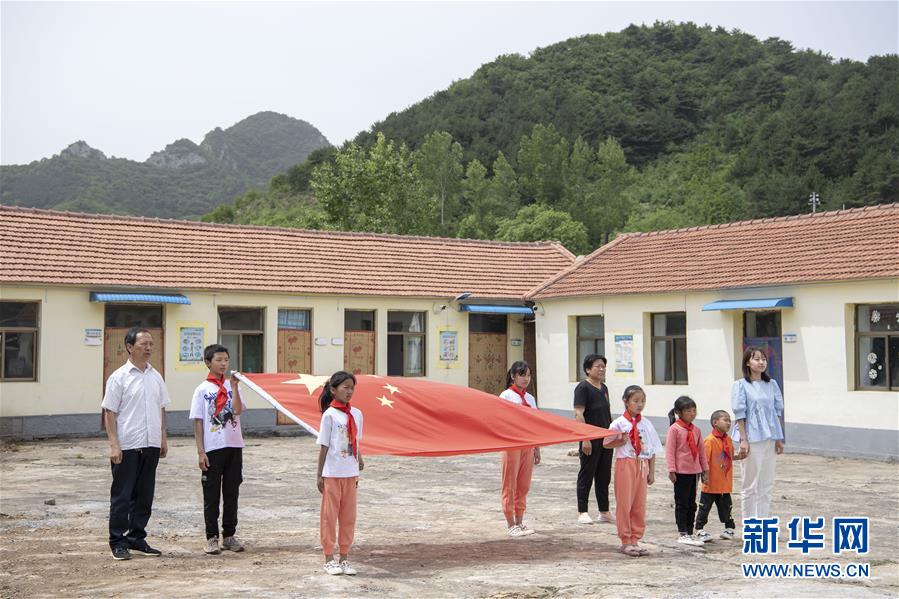 6月2日,開學第一天,馬武寨寄宿制小學舉行了升旗儀式。新華社記者楊晨光攝。