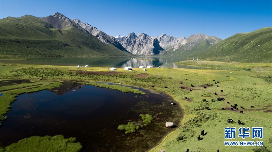 2019年7月9日拍攝的位于三江源地區(qū)的青海省果洛藏族自治州久治縣境內(nèi)的年保玉則風(fēng)光(無人機(jī)照片)。6月2日,青海省生態(tài)環(huán)境廳發(fā)布《2019年青海省生態(tài)環(huán)境狀況公報(bào)》稱,青海省三江源地區(qū)境內(nèi)的長江、黃河、瀾滄江干流流域水質(zhì)優(yōu)良,植被覆蓋度呈增長趨勢,全省生態(tài)環(huán)境狀況總體保持穩(wěn)定。新華社記者吳剛攝。