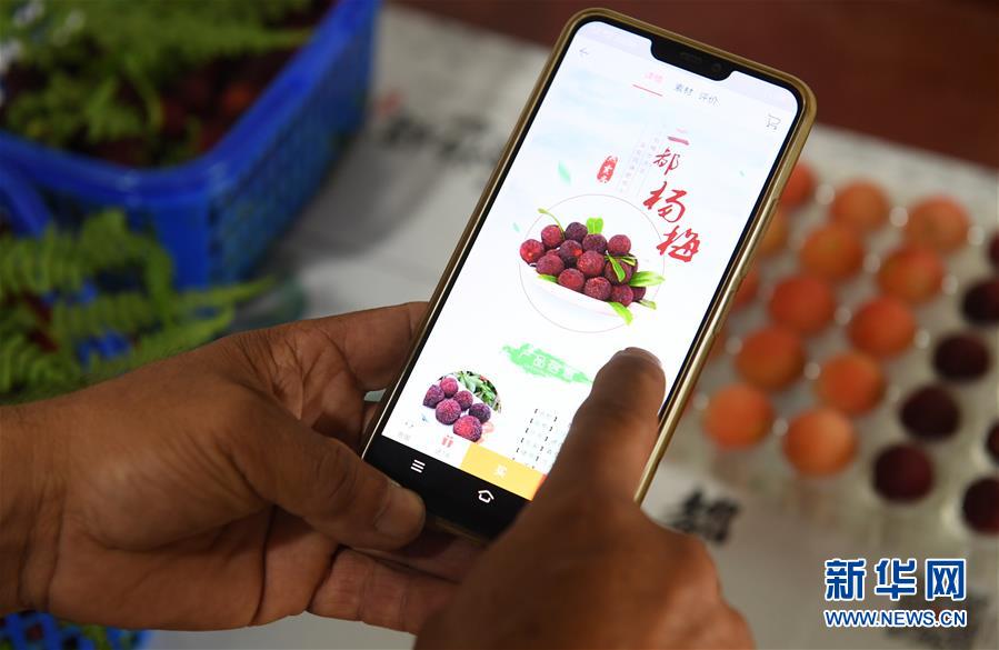 6月3日,在上虞區(qū)驛亭鎮(zhèn),舜利水晶楊梅專業(yè)合作社果農(nóng)在查看自己的電商平臺楊梅銷售頁面。近日,浙江紹興上虞區(qū)二都楊梅開采。楊梅是上虞區(qū)傳統(tǒng)特色農(nóng)產(chǎn)品,目前上虞區(qū)二都楊梅種植面積1651公頃,年產(chǎn)量1.1萬噸,2019年二都楊梅成功申報國家農(nóng)產(chǎn)品地理標志認證。新華社記者翁忻旸攝。