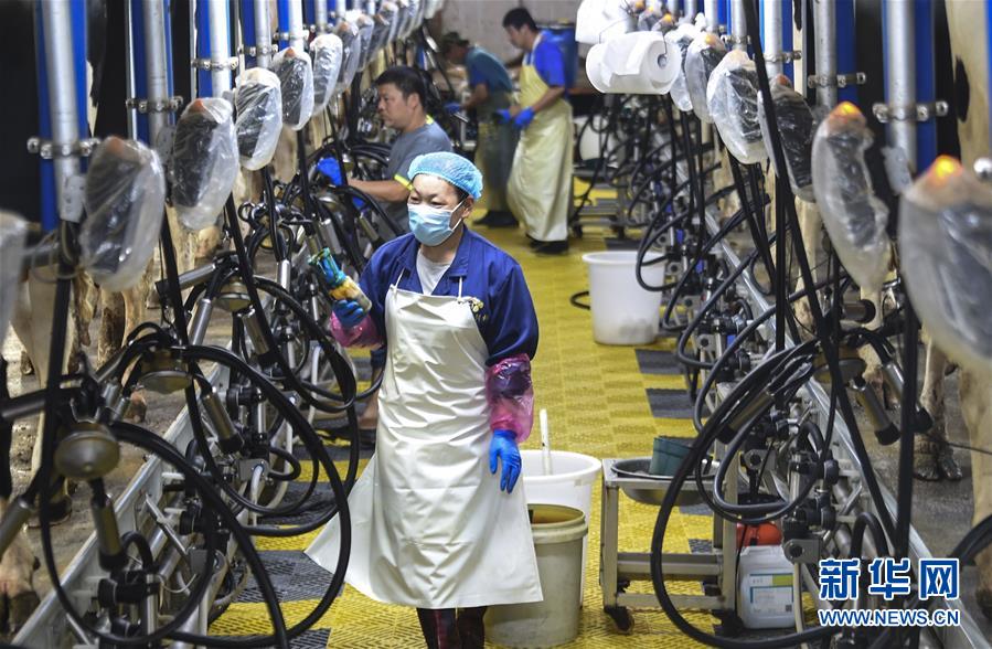 6月3日,村民在深州市榆科鎮(zhèn)郝家莊村奶牛養(yǎng)殖扶貧基地查看擠奶設備運行情況。今年以來,河北省深州市圍繞決勝全面小康、決戰(zhàn)脫貧攻堅任務目標,在推進產業(yè)扶貧的過程中注重激發(fā)內生動力,通過電商扶貧、扶貧車間、特色種植養(yǎng)殖等多種形式,提升自我“造血”功能,提高貧困群眾受益度。新華社記者李曉果攝。