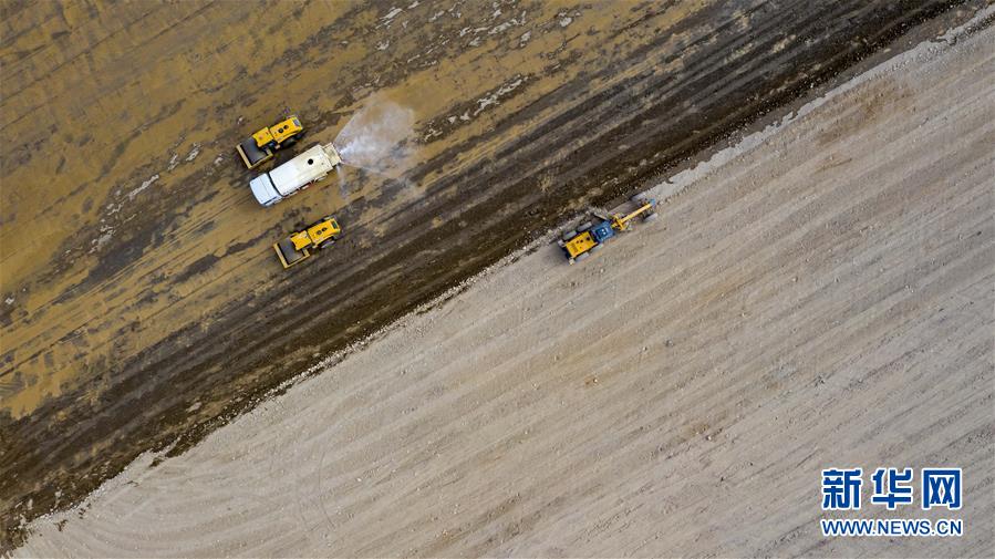 新疆塔什庫(kù)爾干機(jī)場(chǎng)施工現(xiàn)場(chǎng)(6月3日攝)。新華社記者胡虎虎攝。