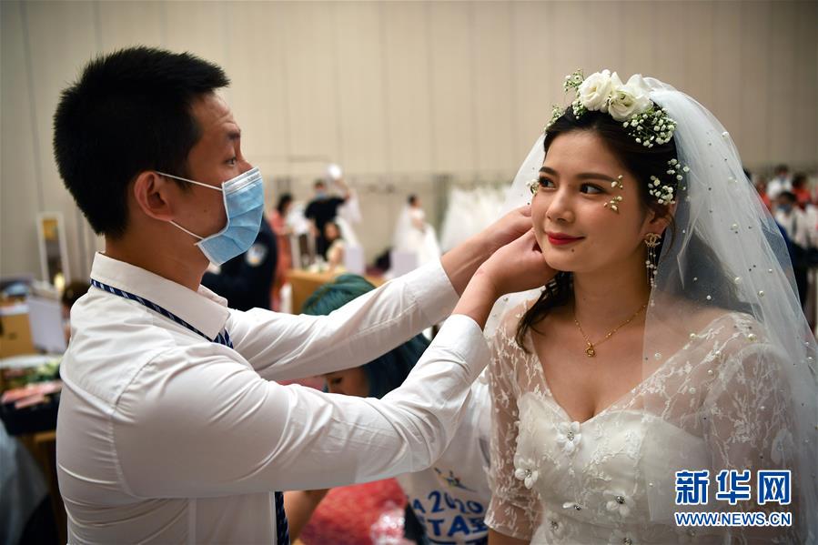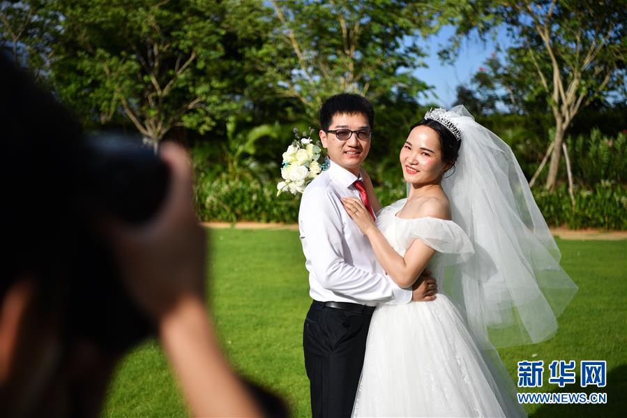 6月6日,在海南博鰲樂城國際醫(yī)療旅游先行區(qū),新人準(zhǔn)備參加集體婚禮。 新華社記者 張玉薇 攝