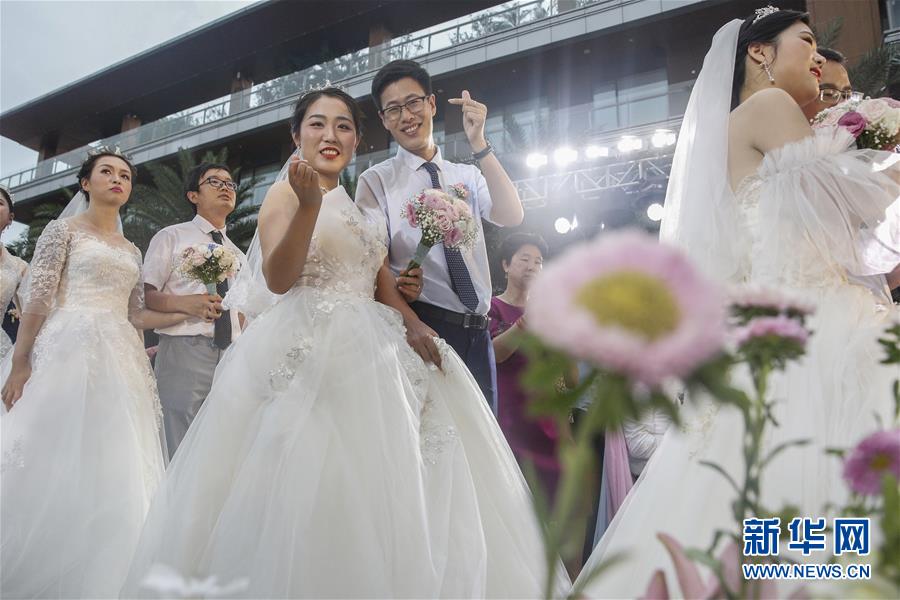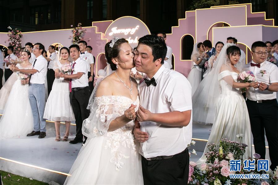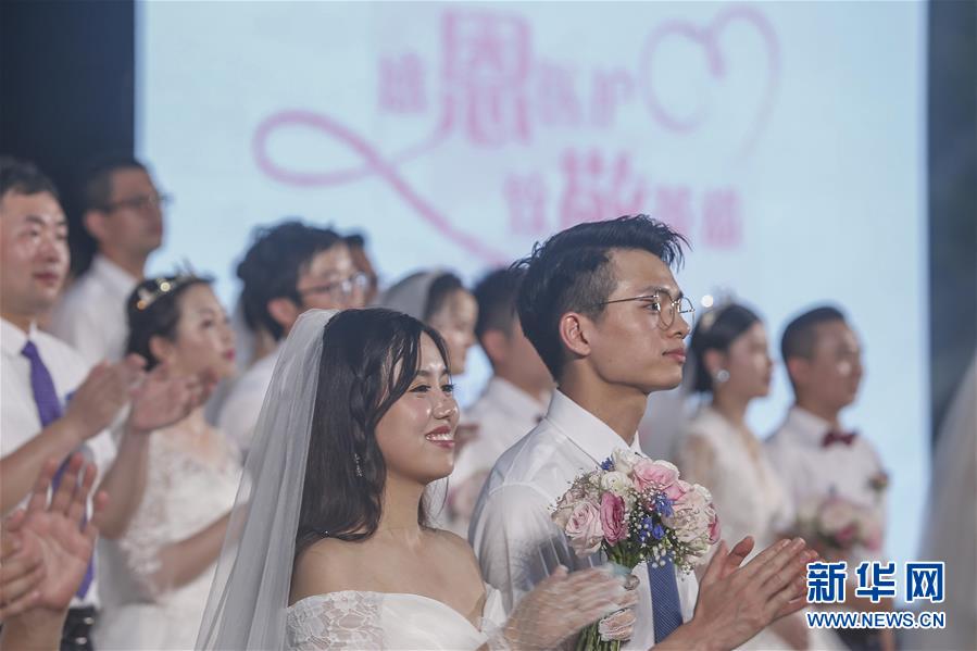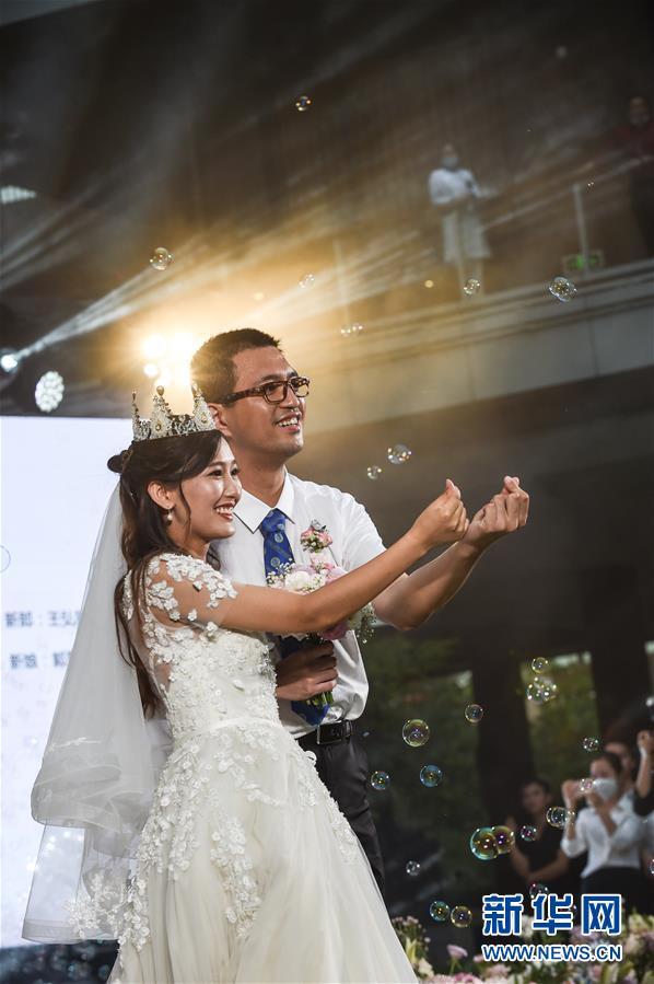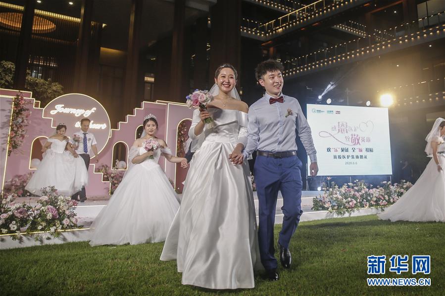6月6日,新人在海南博鰲樂城國際醫(yī)療旅游先行區(qū)參加集體婚禮。當(dāng)日,來自北京、武漢、廣州等地的30對(duì)新人在海南博鰲樂城國際醫(yī)療旅游先行區(qū)參加了一場集體婚禮。參加婚禮的部分新人此前因參加湖北的抗疫工作而推遲了婚期。 新華社記者 張麗蕓 攝