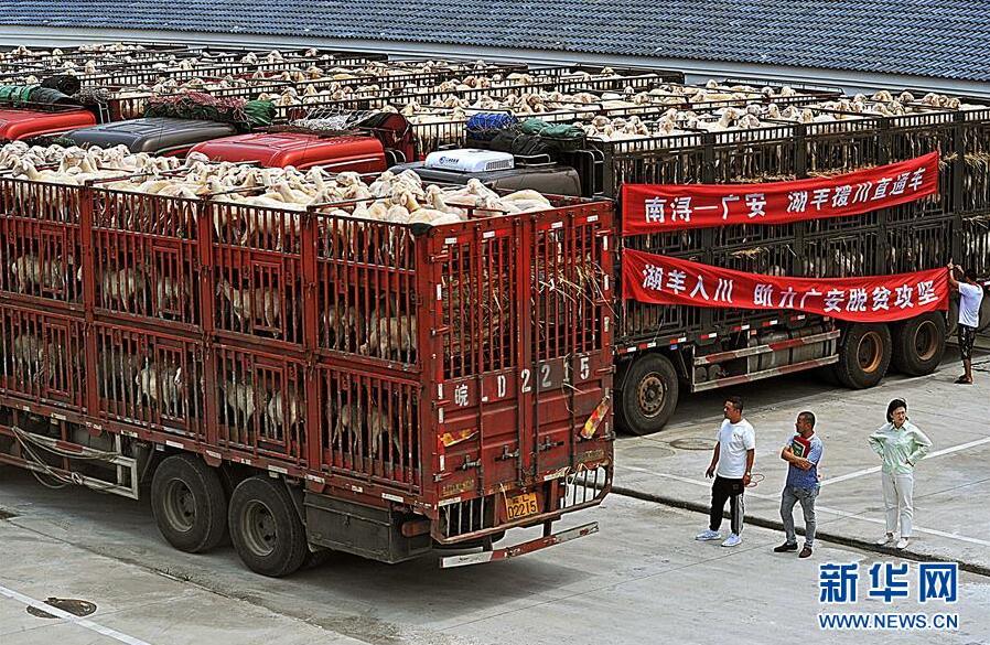 6月7日,裝運(yùn)湖羊的貨車準(zhǔn)備發(fā)車。當(dāng)日,浙江省湖州市南潯區(qū)湖羊養(yǎng)殖場飼養(yǎng)的五千余頭湖羊啟程運(yùn)往該區(qū)對口幫扶的四川省廣安市廣安區(qū)。2018年以來,南潯區(qū)依托湖羊養(yǎng)殖產(chǎn)業(yè)優(yōu)勢,積極實施“湖羊入川”和“湖羊致富”工程,向?qū)趲头龅貐^(qū)提供優(yōu)質(zhì)湖羊種羊和湖羊養(yǎng)殖技術(shù)指導(dǎo)。截至目前,南潯區(qū)已向廣安等地提供1.2萬余頭扶貧湖羊。新華社記者譚進(jìn)攝