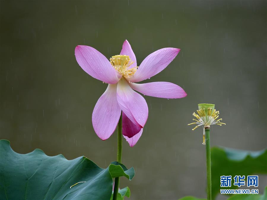6月7日,一陣小雨過后,福州金山公園內(nèi)盛開的荷花愈加嬌艷欲滴。新華社記者姜克紅攝