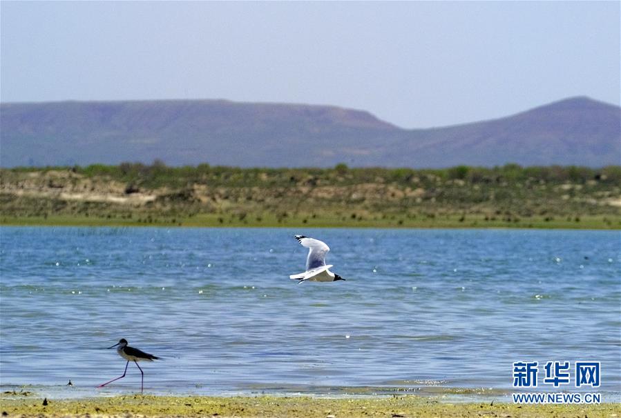 這是6月9日在泊江海子拍攝的黑翅長(zhǎng)腳鷸。近年來(lái),在當(dāng)?shù)卣亩喾N措施治理下,曾經(jīng)水面萎縮的內(nèi)蒙古自治區(qū)鄂爾多斯市境內(nèi)的泊江海子水量逐漸恢復(fù)。近期,包括遺鷗在內(nèi)的40多種鳥類來(lái)此棲息,泊江海子重新成為鳥類的樂園。新華社記者賈立君攝
