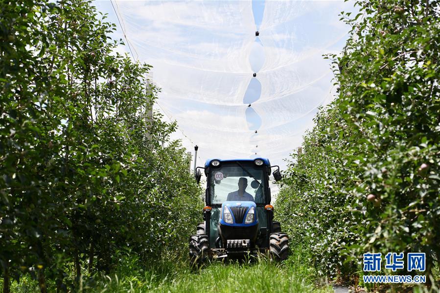 6月11日,農民在貴州省威寧縣一處蘋果基地里駕駛農機管護果園。近日,貴州省威寧彝族回族苗族自治縣的農民搶抓農時,對蘋果園進行疏果、除草等田間管理,呈現(xiàn)出一派夏管農忙景象。威寧縣蘋果種植面積50余萬畝,蘋果產業(yè)已逐步成為當地農民增收致富的主導產業(yè)之一。新華社記者楊文斌攝。