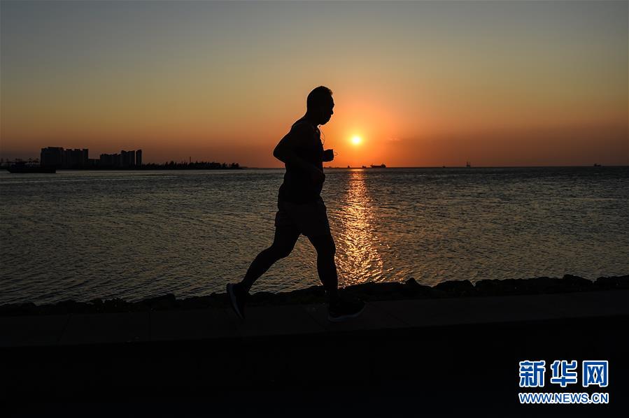 夜幕將至,一位市民在??谑兰o(jì)公園濱海步道跑步(5月15日拍攝)。近年來(lái),夜跑成為越來(lái)越多都市人熱衷的健身方式之一。在海南海口,每當(dāng)夜幕降臨,“夜跑族”來(lái)到海口萬(wàn)綠園、世紀(jì)公園等夜跑場(chǎng)所跑步,用一身酣暢淋漓的汗水?dāng)[脫白天工作中的壓力,享受跑步帶來(lái)的歡愉。新華社記者 蒲曉旭 攝
