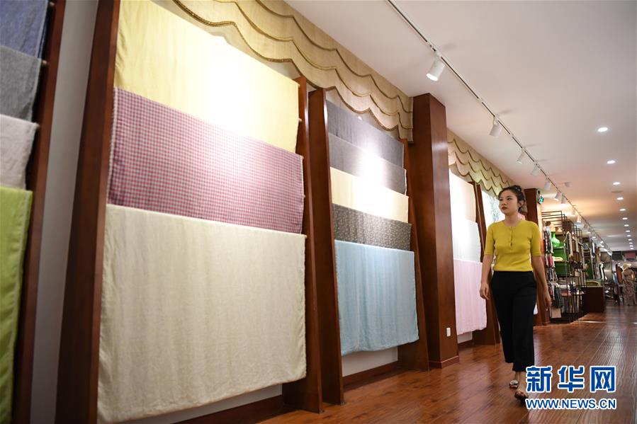 6月12日,天運(yùn)夏布會(huì)館負(fù)責(zé)人唐藝在檢查展廳內(nèi)展示的夏布樣品。新華社記者 唐奕 攝