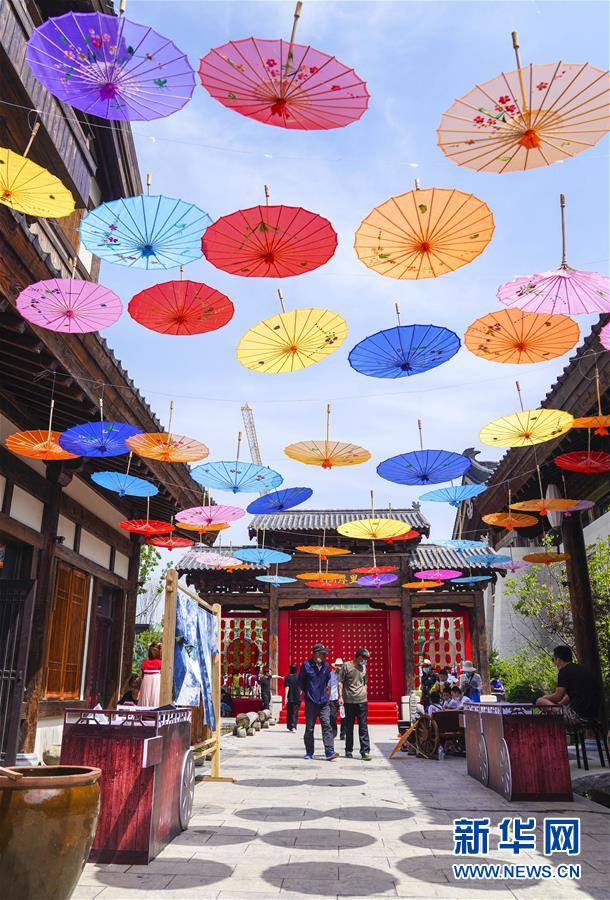 6月13日,市民在長春市世茂蓮花山小鎮(zhèn)寬厚里商街參觀游覽。當日是“文化和自然遺產(chǎn)日”。吉林長春首屆蓮花山消夏生活節(jié)在世茂蓮花山小鎮(zhèn)舉行?;顒訉⒎沁z展示與假日消暑休閑相結(jié)合,讓游人在“古色古香”的油紙傘巷中品傳統(tǒng)文化魅力,享夏日休閑愜意。新華社記者 許暢 攝