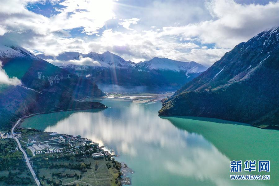 位于昌都市八宿縣境內(nèi)318國(guó)道旁的然烏湖(6月7日攝,無(wú)人機(jī)照片)。新華社記者 田金文 攝