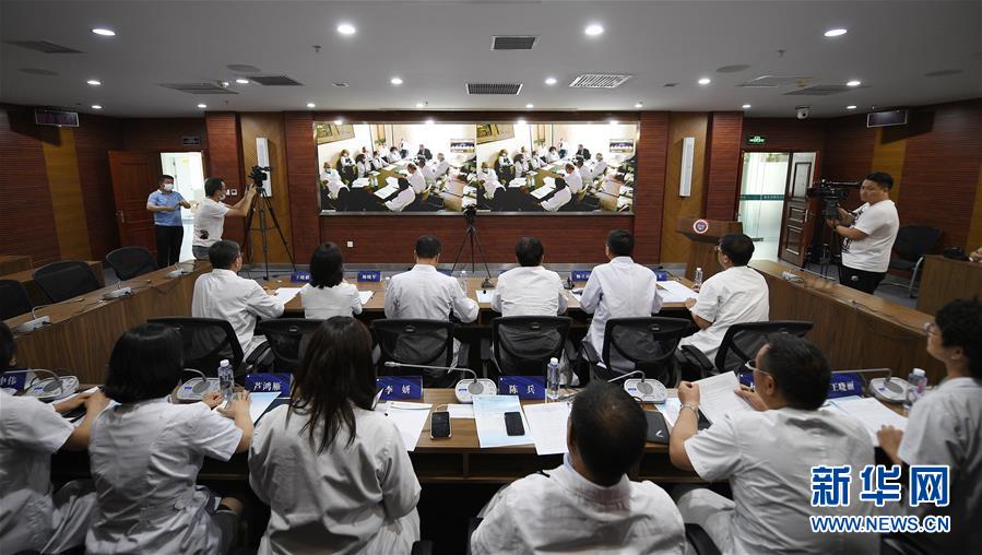 6月17日,寧夏醫(yī)科大學(xué)總醫(yī)院專家與羅馬第一公共醫(yī)療衛(wèi)生中心醫(yī)務(wù)人員進(jìn)行視頻交流。新華社記者 王鵬 攝